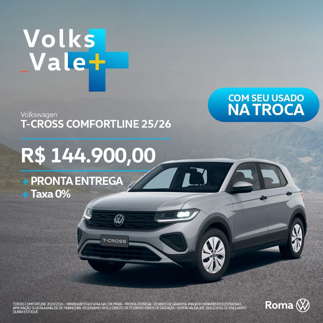 TCROSS COMFORTLINE 2025/2026 - 9BWBH6BF0T4074964 NA COR PRATA - PRONTA ENTREGA - 03 ANOS DE GARANTIA .IMAGENS MERAMENTE ILUSTRATIVAS. APROVAÇÃO SUJEITA A ANÁLISE DE FINANCEIRA. RESERVAMO-NOS O DIREITO DE POSSÍVEIS ERROS DE DIGITAÇÃO. OFERTA VÁLIDA ATÉ 28/02/2026 OU ENQUANTO DURAR ESTOQUE.