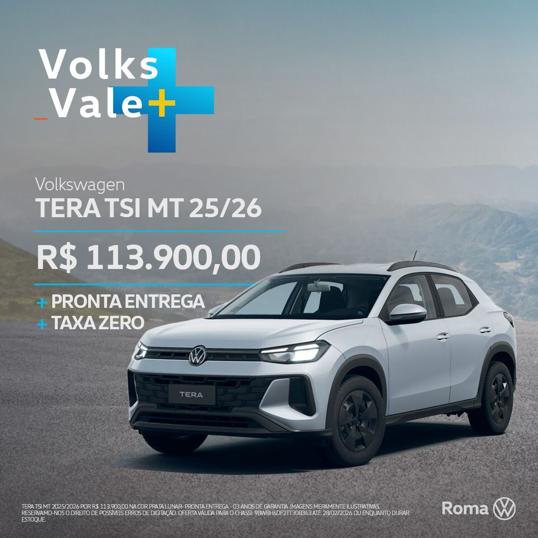 TERA TSI MT 2025/2026 POR R$ 113.900,00 NA COR PRATA LUNAR- PRONTA ENTREGA - 03 ANOS DE GARANTIA .IMAGENS MERAMENTE ILUSTRATIVAS. RESERVAMO-NOS O DIREITO DE POSSÍVEIS ERROS DE DIGITAÇÃO. OFERTA VÁLIDA PARA O CHASSI: 9BWBH6DF2TT308363 ATÉ 28/02/2026 OU ENQUANTO DURAR ESTOQUE.