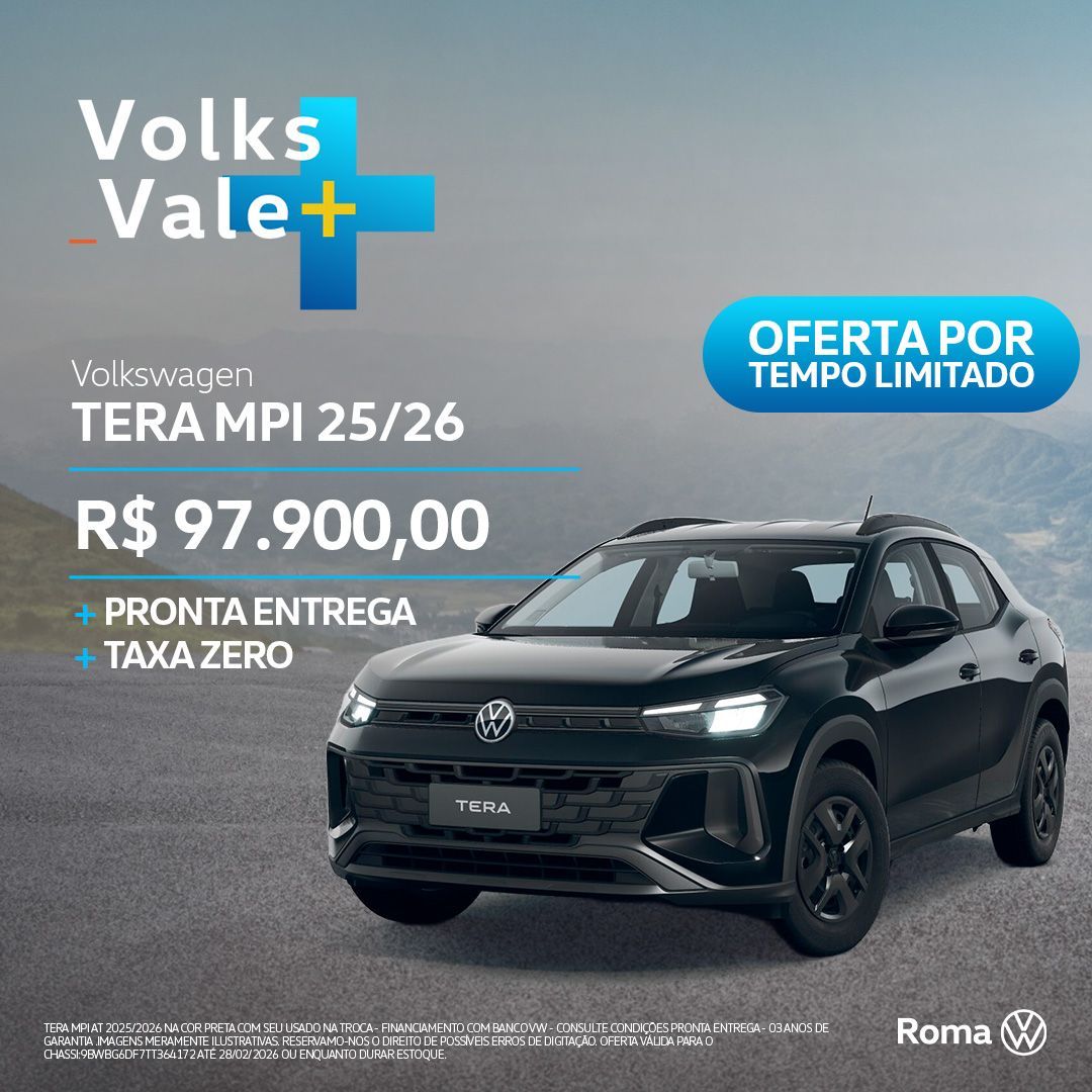 TERA MPI AT 2025/2026 NA COR PRETA COM SEU USADO NA TROCA - FINANCIAMENTO COM BANCO VW - CONSULTE CONDIÇÕES PRONTA ENTREGA - 03 ANOS DE GARANTIA .IMAGENS MERAMENTE ILUSTRATIVAS. RESERVAMO-NOS O DIREITO DE POSSÍVEIS ERROS DE DIGITAÇÃO. OFERTA VÁLIDA PARA O CHASSI:9BWBG6DF7TT364172 ATÉ 28/02/2026 OU ENQUANTO DURAR ESTOQUE. "